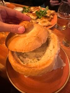 Hvre: se encuentra en el barrio judío, es una antigua sinagoga reconvertida en bar-restaurante de estilo retro, con comida, bebida y cócteles. Probamos sus cervezas y sus batatas fritas, deliciosas! El entorno es espectacular.